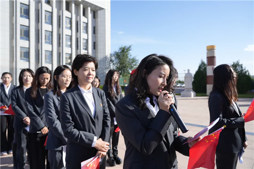 升旗儀式后,在飄揚的五星紅旗下,全體干部職工合唱《歌唱祖國》。“五星紅旗迎風(fēng)飄揚,勝利歌聲多么嘹亮……”,每個人都揮舞著手中的國旗,臉上洋溢著喜悅與自豪,歌聲激情澎湃,匯聚成一股強大的力量,唱出了中華民族的豪邁氣概,唱響了新時代愛國主義主旋律。活動最后進行了愛國主義詩歌朗誦。